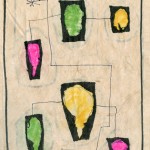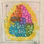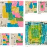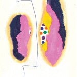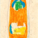 I created a form of art, which I call “composite” art. They are all in bound books. Using consecutive pages with torn out areas, many layers are created. These windows reveal art on the following pages. Each layer stands alone as a complete image as well as being part of the whole when seen from the top layer. Examples 1 and 2 illustrate how a composite is created with its many layers. The other examples here reveal the top/first layer with hints of the images beneath.
