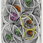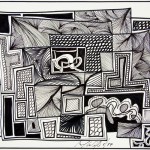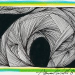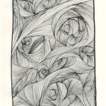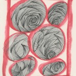 I have not mastered the “swirl” but I just love the time and patience it takes to create such imagery. I have drawn hundreds of these. It is doodling at its best. Half of the pieces here are large measuring approximately 18″ x 24″. The other half are found in bound books.