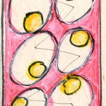 There are 45 books spanning these 5 years. The largest book is 12″ x 16″ and the smallest being 1.5″ x 2″. All the books have wonderful covers as described in Sketchbooks 1978-1999. Most of the art displayed here was drawn on rough paper made from rag/hemp. Paper with the greatest percentage of rag/hemp is the most absorbent and gives an almost watercolor effect.