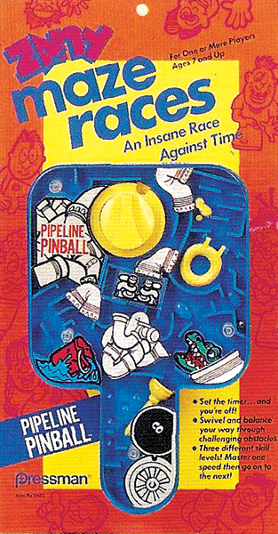 Maze Races was a skill and action game. Two different games were manufactured. The object was to overcome obstacles and reach the finish in a faster time than your opponent. This mechanical-type game preceded the handheld electronic versions.