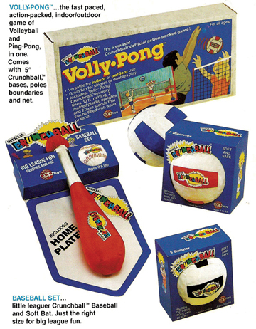 I believe the Crunch Ball is one of the greatest balls and is certainly the lightest. It is very special as a concept and one of three products launched by Cap Toys. One day, being fed up with all the styrene peanuts flooding my office after opening cartons, I told two assistants to make a ball out of parachute material and stuff it with those styrene peanuts. Voila! It became the lightest and easiest ball to smack and catch.
